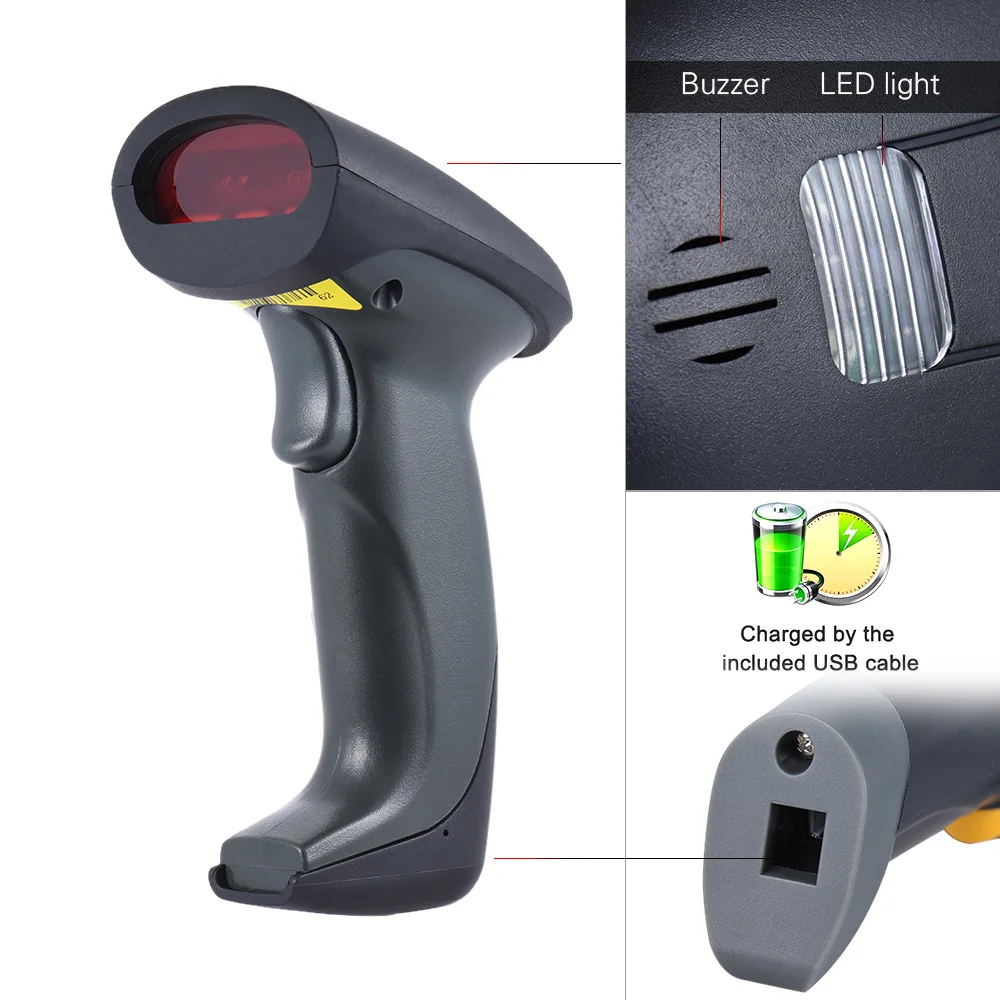 2.4G Wireless Handheld Barcode Scanner Bar Code Reader with Receiver USB Cable for Supermarket Library Express Company Retail Store Warehouse