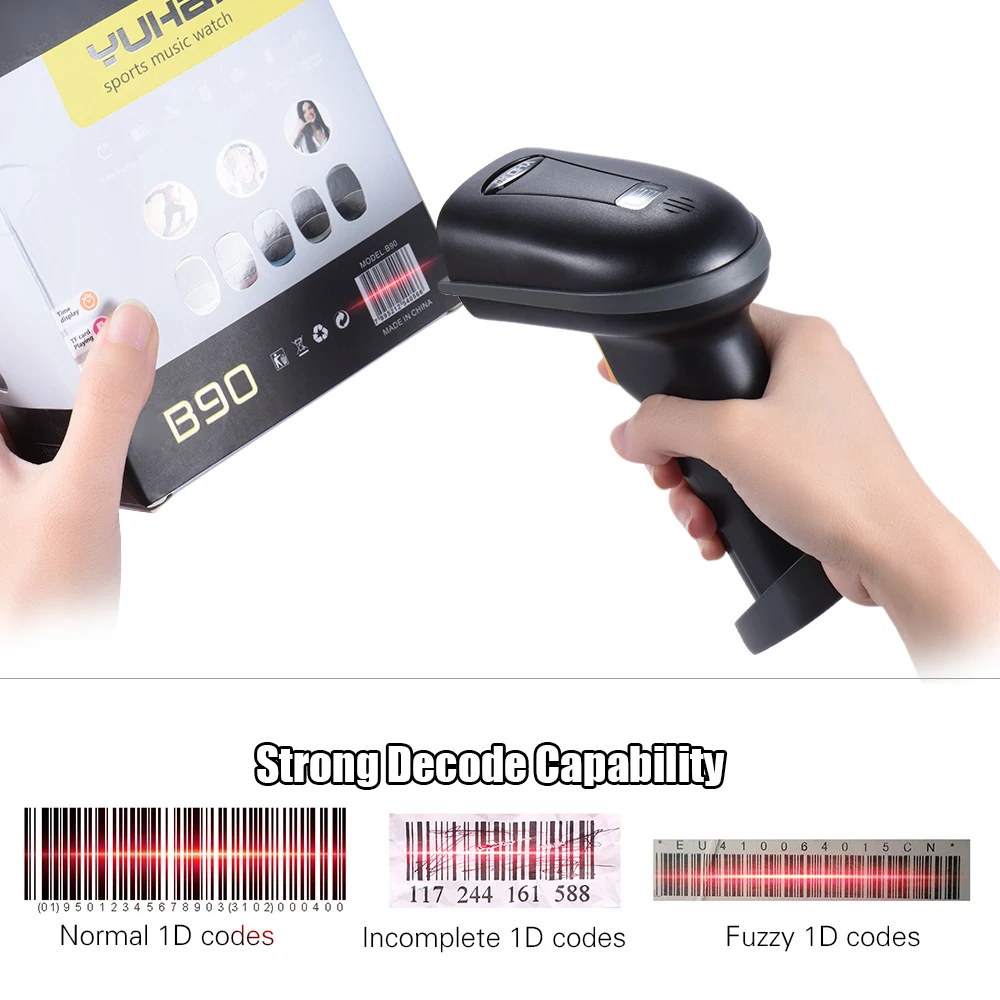 Wireless handheld barcode scanner with receiver, plug and play, simple operation.