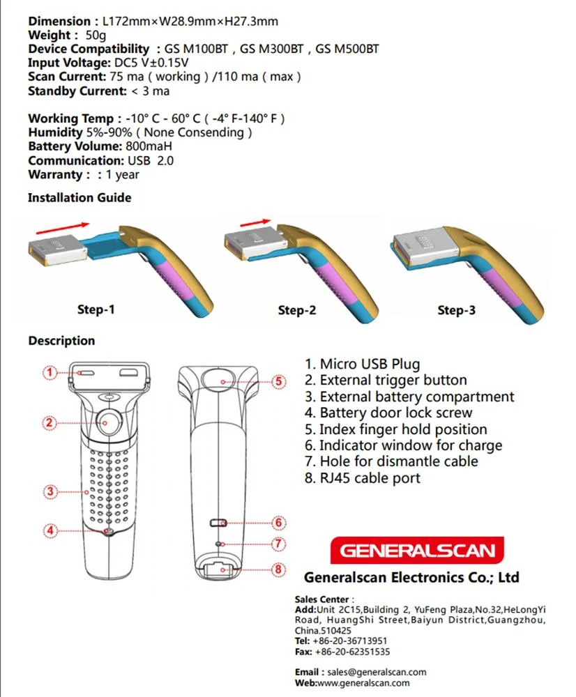 Gereralscan HG135 Handheld Grip for Pocket Barcode Scanners