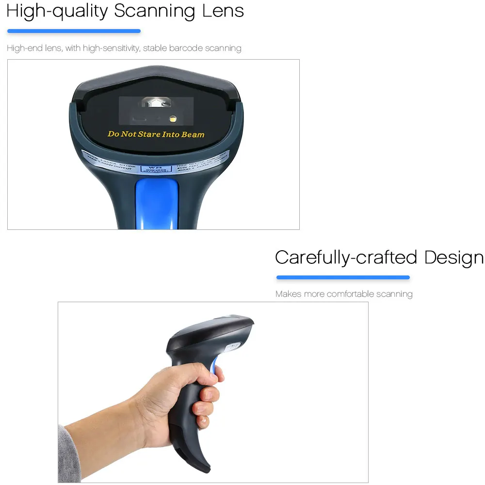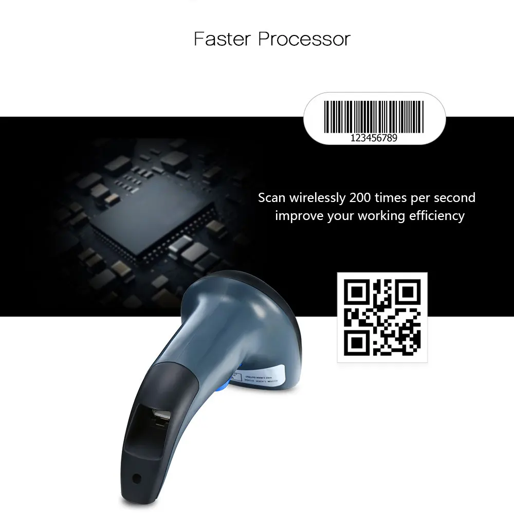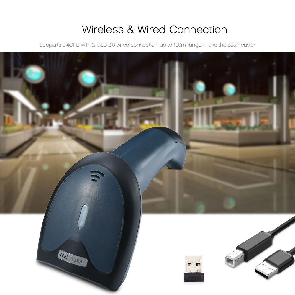 Adopts 2.4GHz wireless technology, up to 100m of the communication distance in the open place, ideal in a warehouse where several people are scanning simultaneously. And it supports wired connection via USB cable, choose the most convenient one for you to use