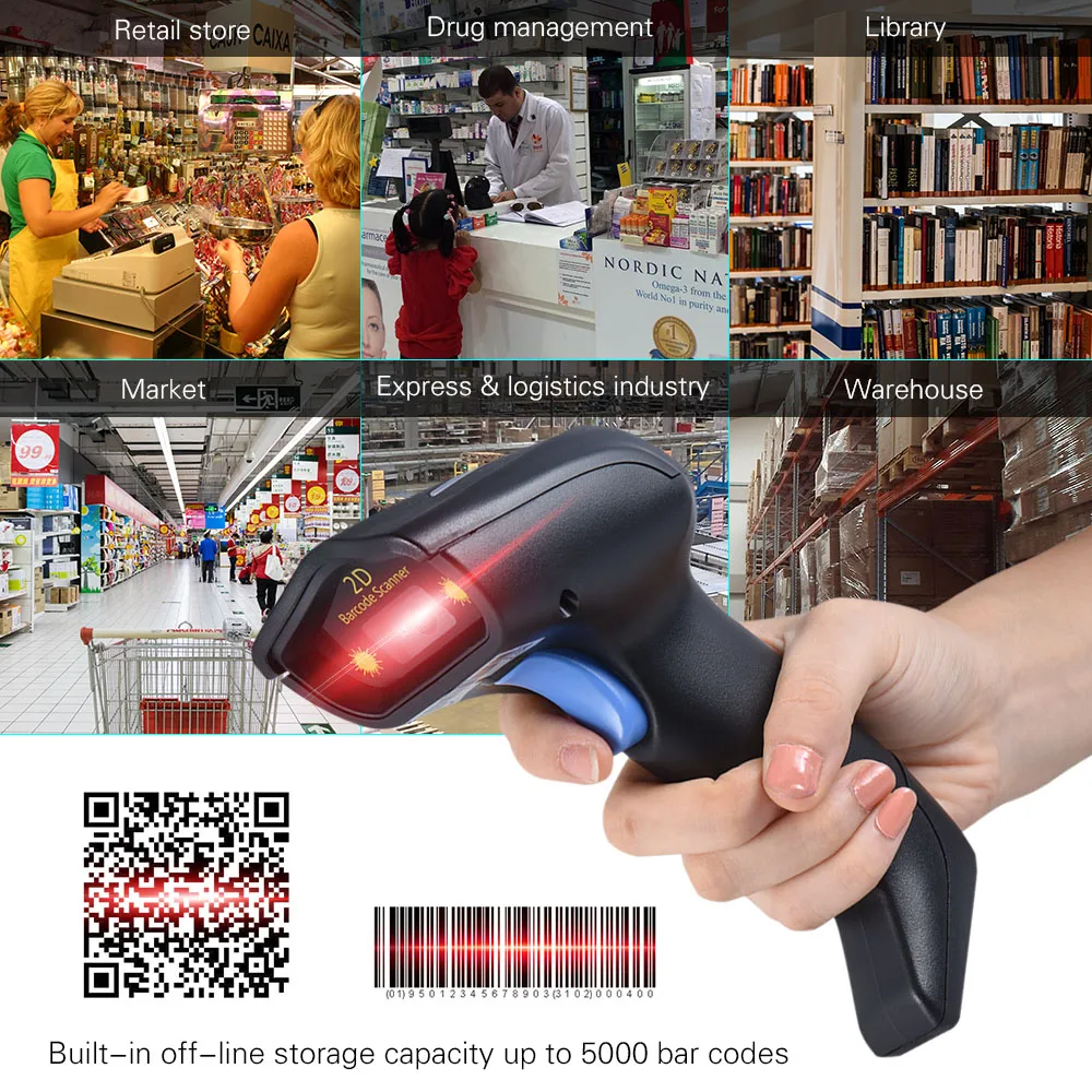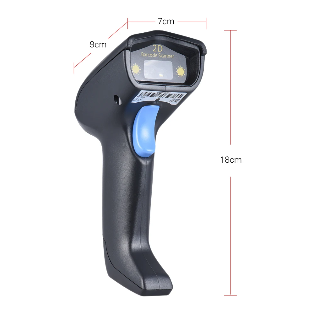 2.4G Wireless Cordless Handheld 1D 2D QR Barcode Bar Code Scanner Reader with Receiver USB2.0 Cable for Supermarket Library Express Company Retail Store Warehouse