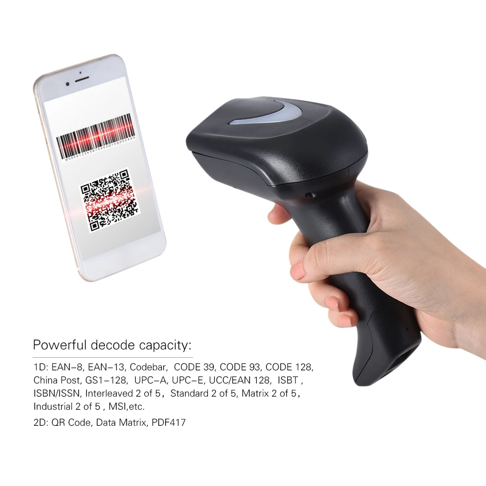 2.4G wireless handheld barcode scanner, with powerful decode capacity for multiple 1D & 2D barcode.