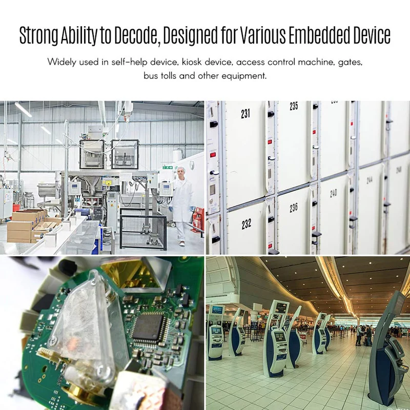 Small size and embedded design, especial for self-help device, kiosk device, access control machine, gates, bus tolls and other equipment.