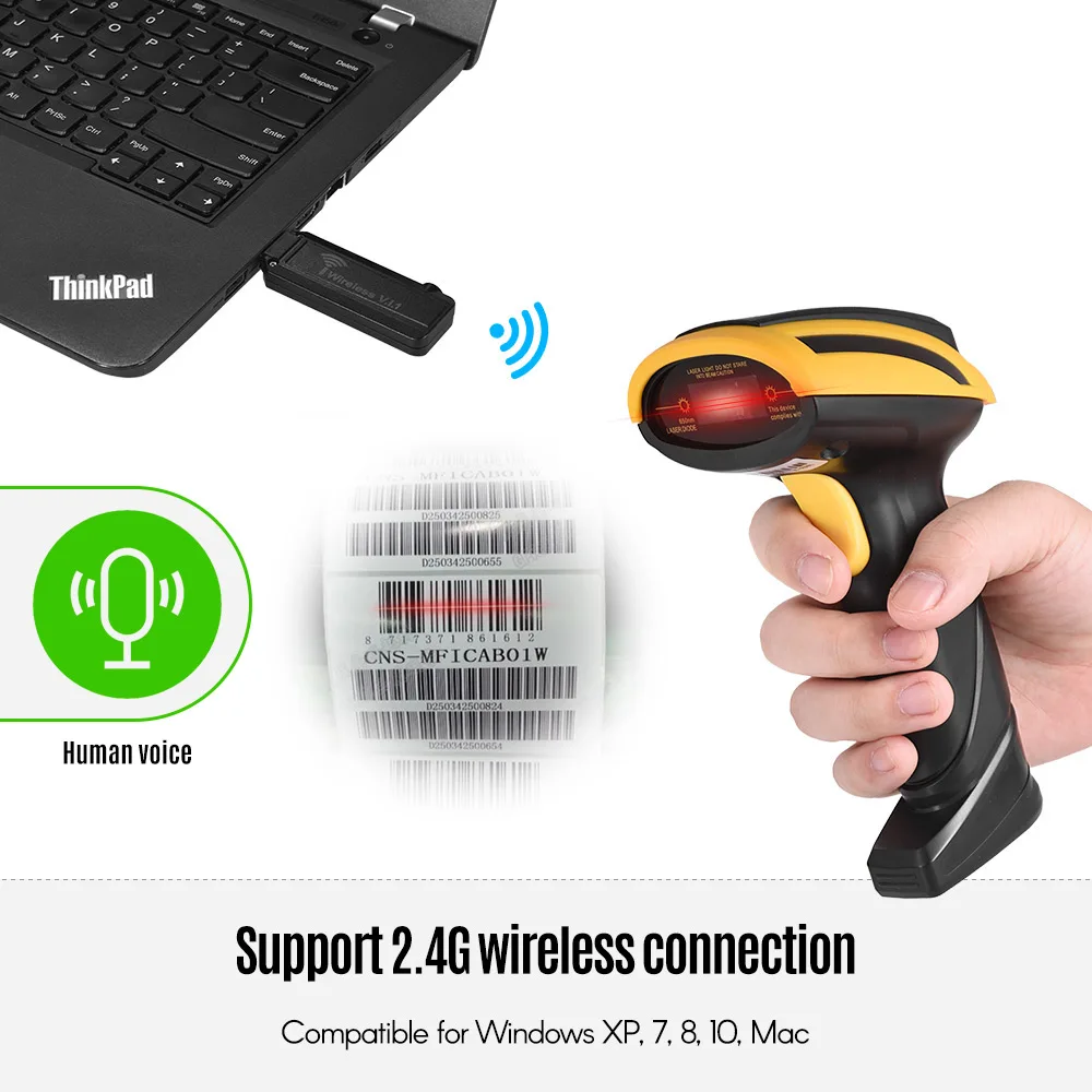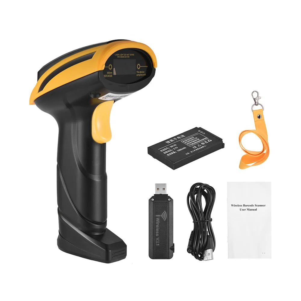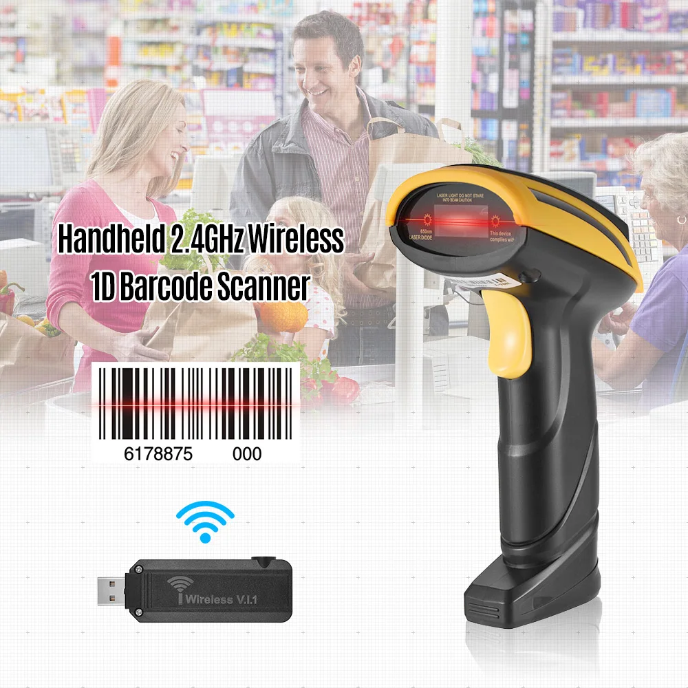 Handheld 2.4 GHz Wireless 1D Barcode Scanner with USB Receiver Rechargeable Bar Code Reader Inventory Memory