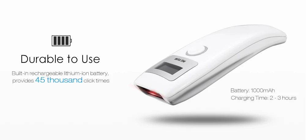Integrated 1000mAh rechargeable lithium-ion battery, the button's service life reaches up to 45 thousand times. IP41 waterproof level, 1.5m shockproof, more durable, you don't worry about that the scan screen will be broken easily and the dust effects it operates