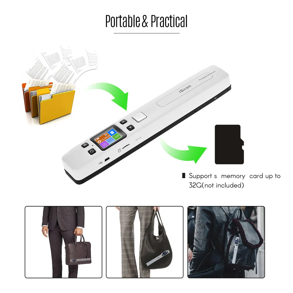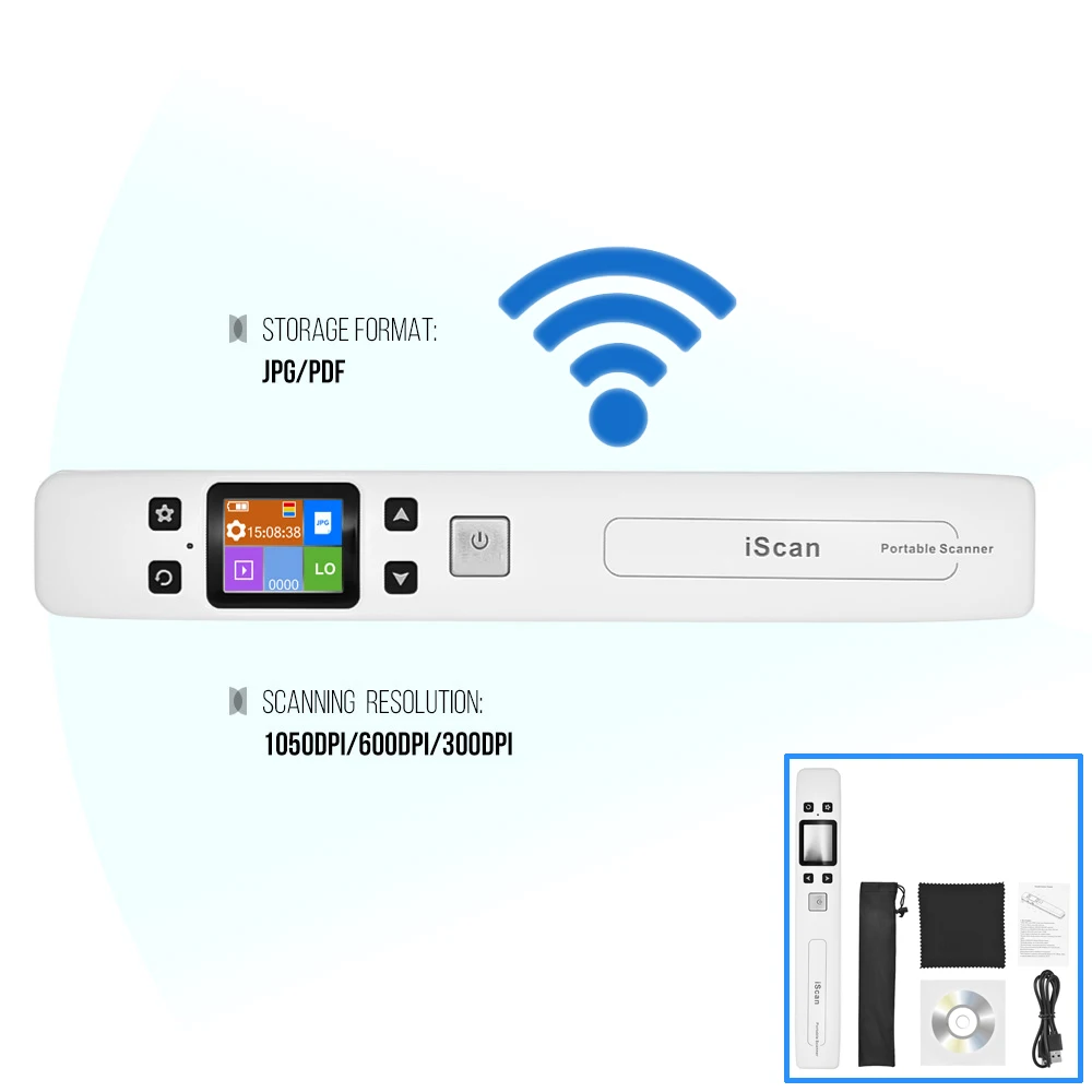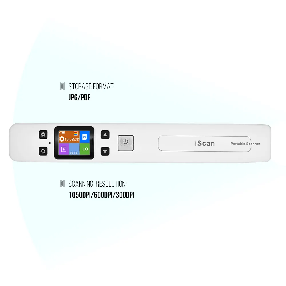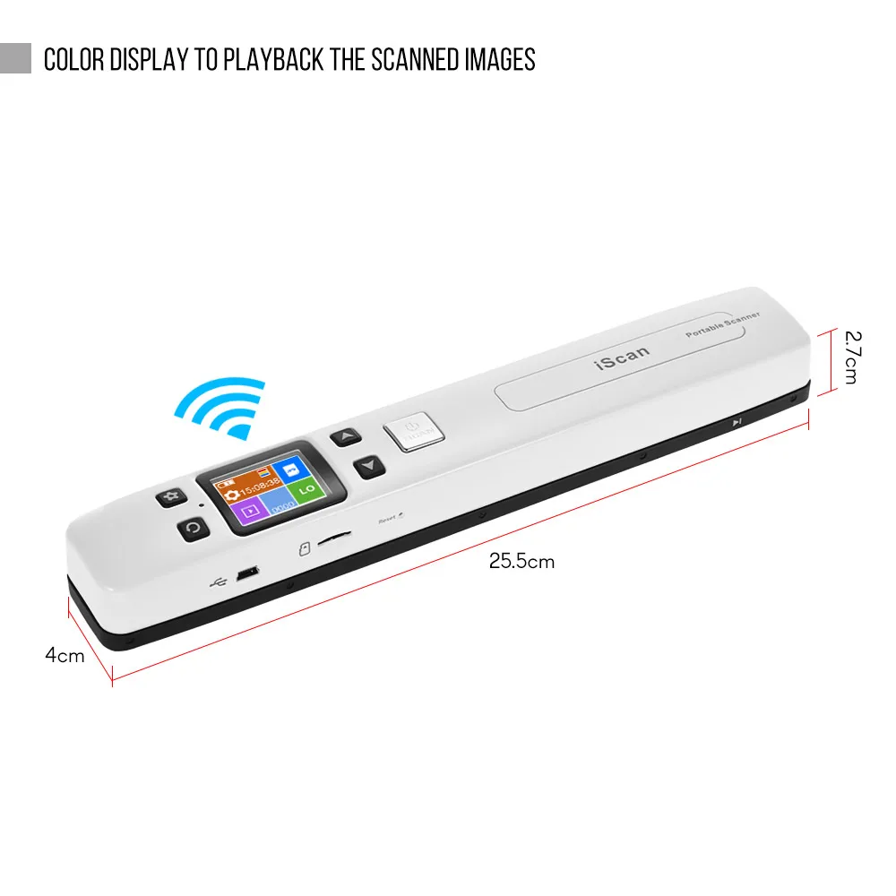 Wifi 1050DPI High Speed Portable Wand Document & Images Scanner A4 Size JPG/PDF Formate LCD Display for Business Reciepts Books