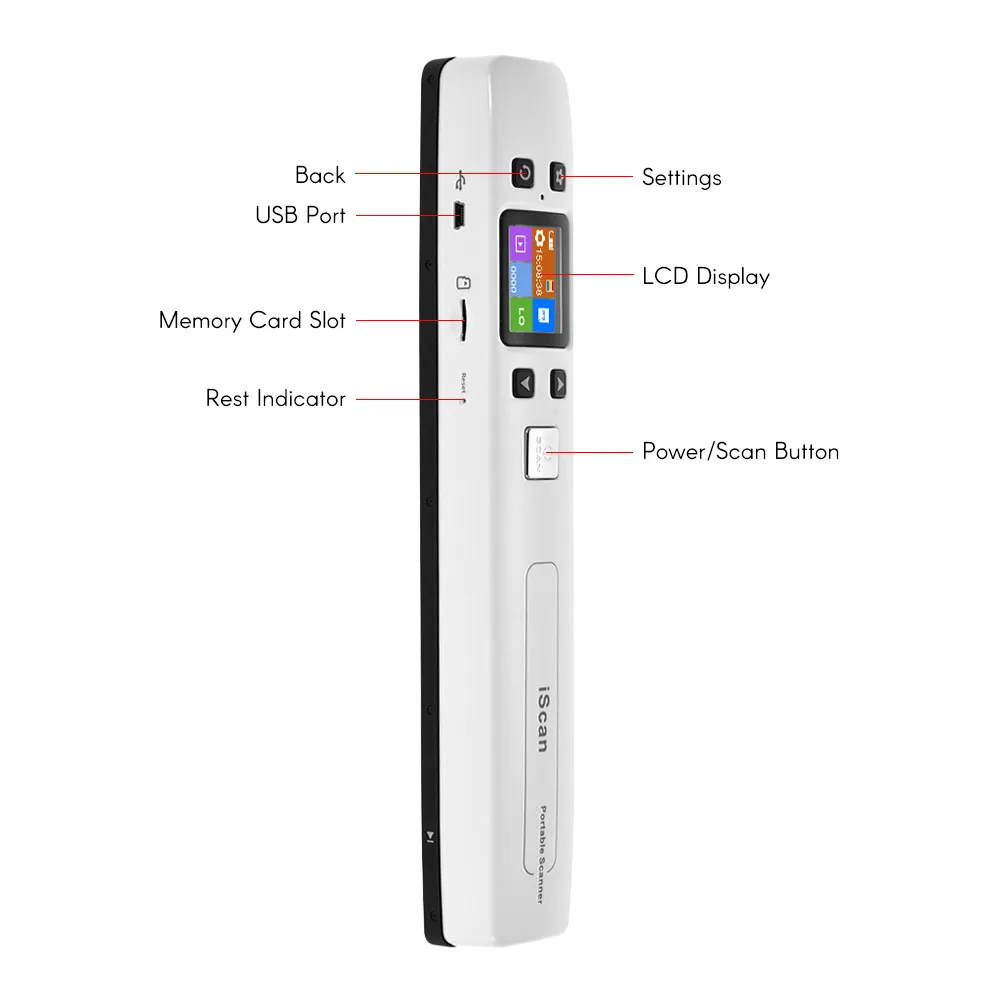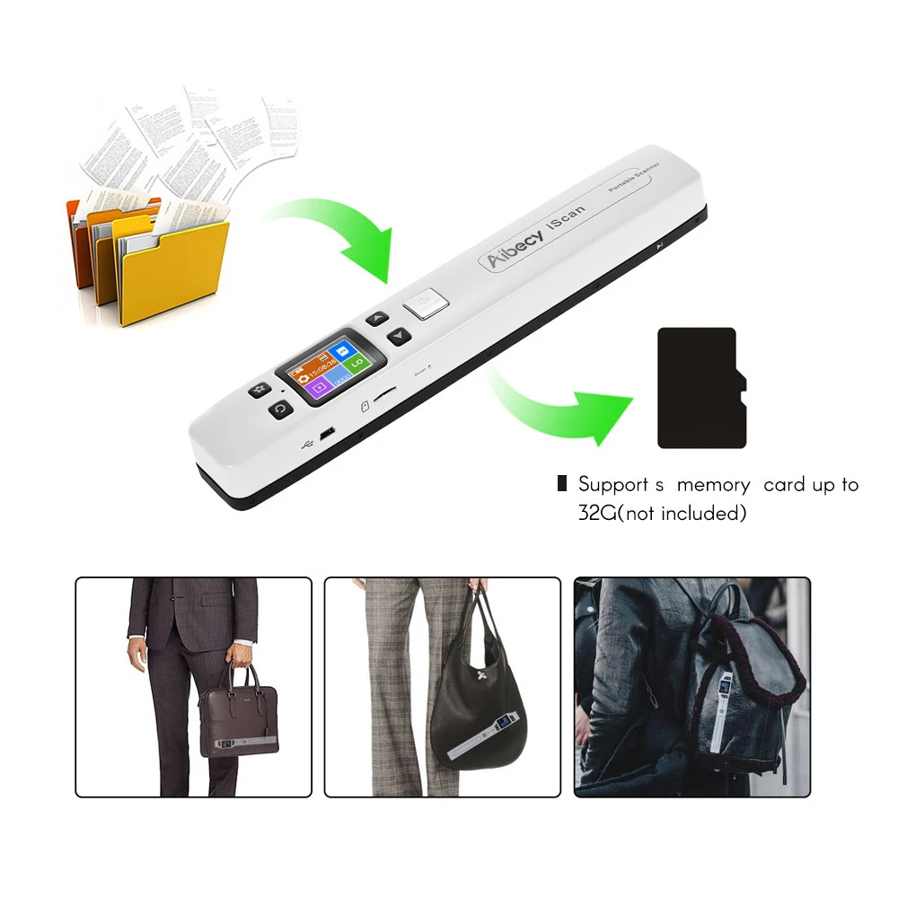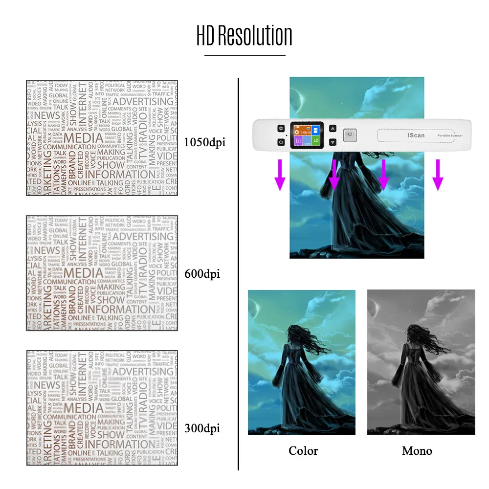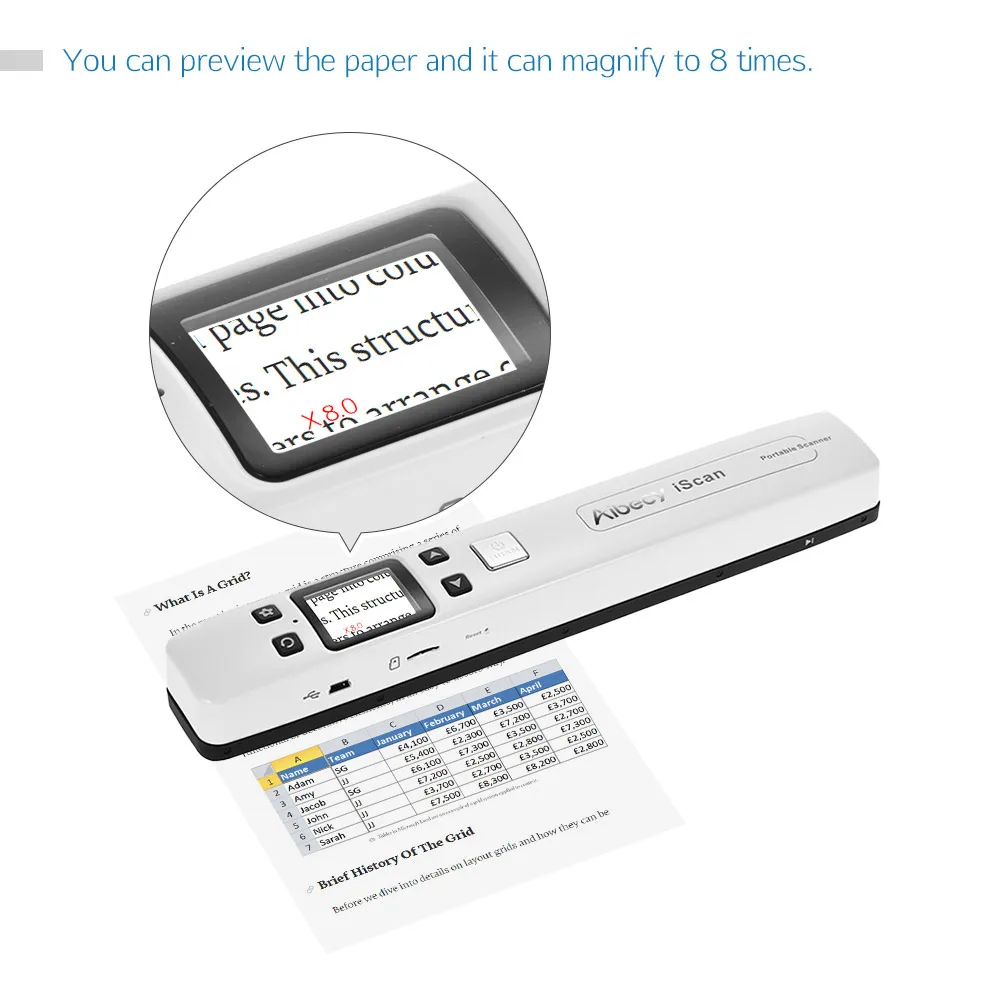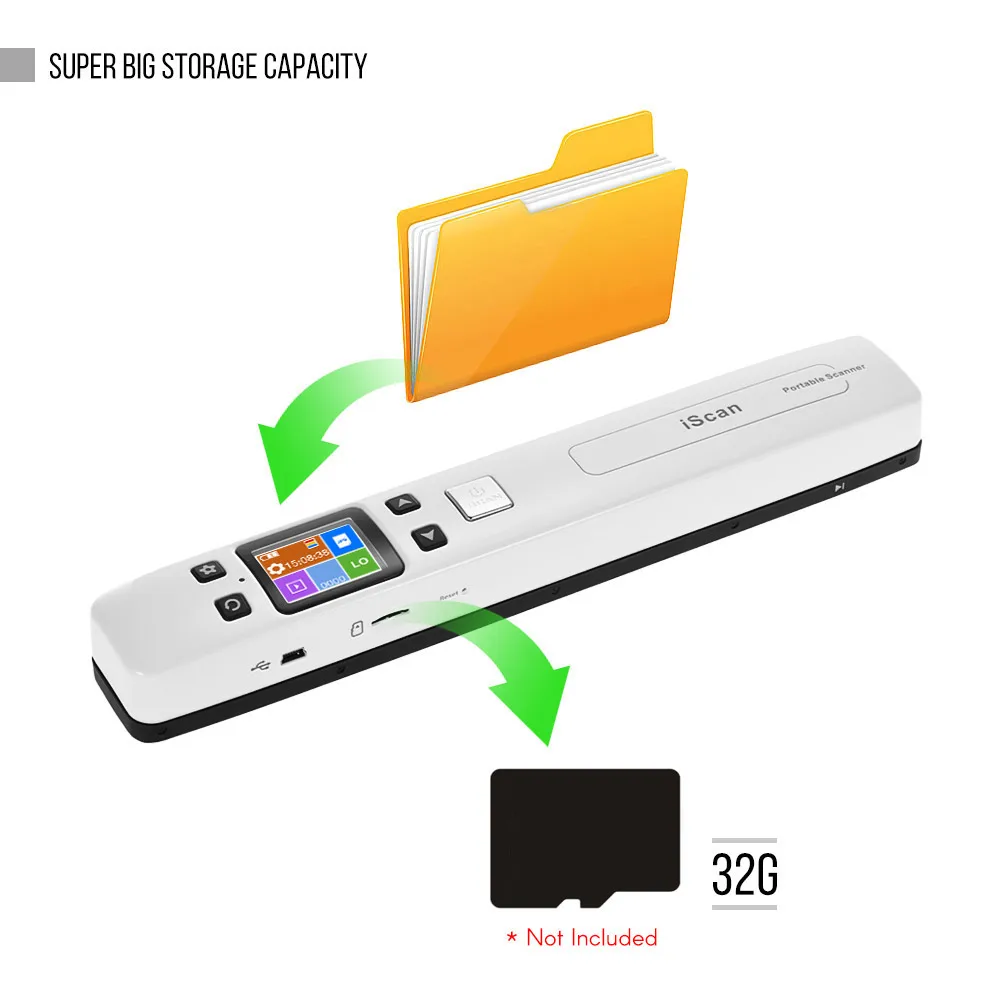 Wifi 1050DPI High Speed Portable Wand Document & Images Scanner A4 Size JPG/PDF Formate LCD Display for Business Reciepts Books
