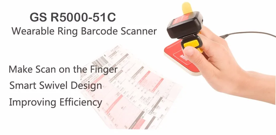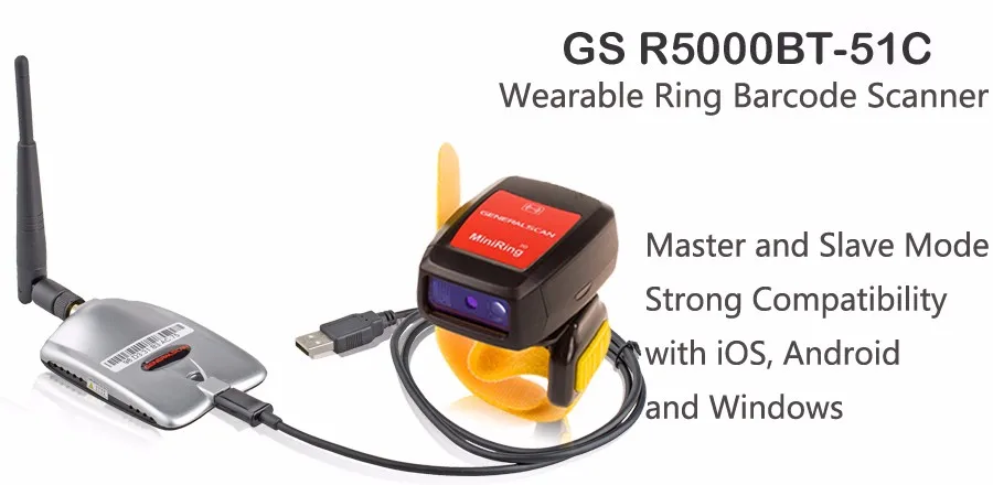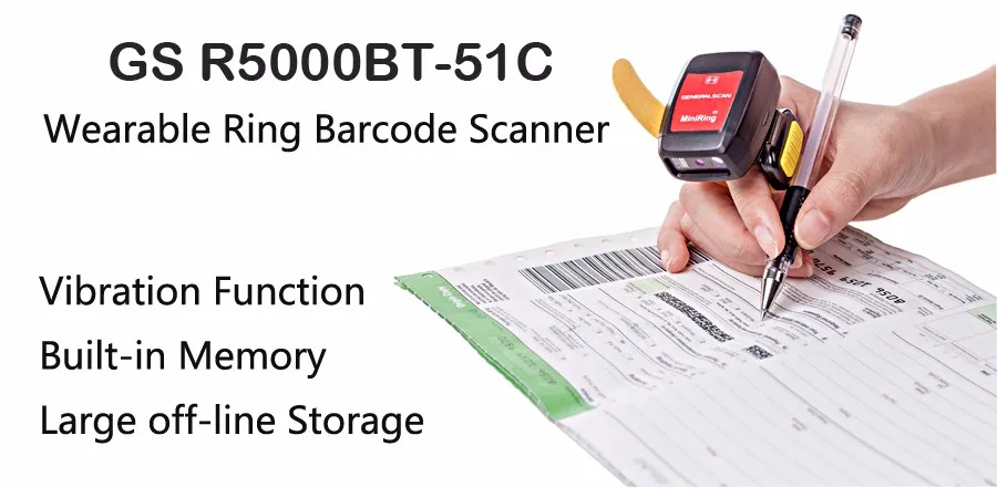 2D Bluetooth Wearable Ring-style Barcode scanner, GS R5000BT, is a small size and powerful new generation barcode scanner. It designs for picking and sorting application, enables your operator to free hands and improves operational efficiency in your warehouse, distribution center and retail store.