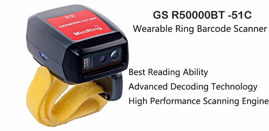 GS R5000BT wearable Ring scanner embedded 2D high scanning performance engine which has an ability to decode 1D and 2D barcodes. The powerful engine also enables scan barcodes on the screen and even for poor quality barcodes.