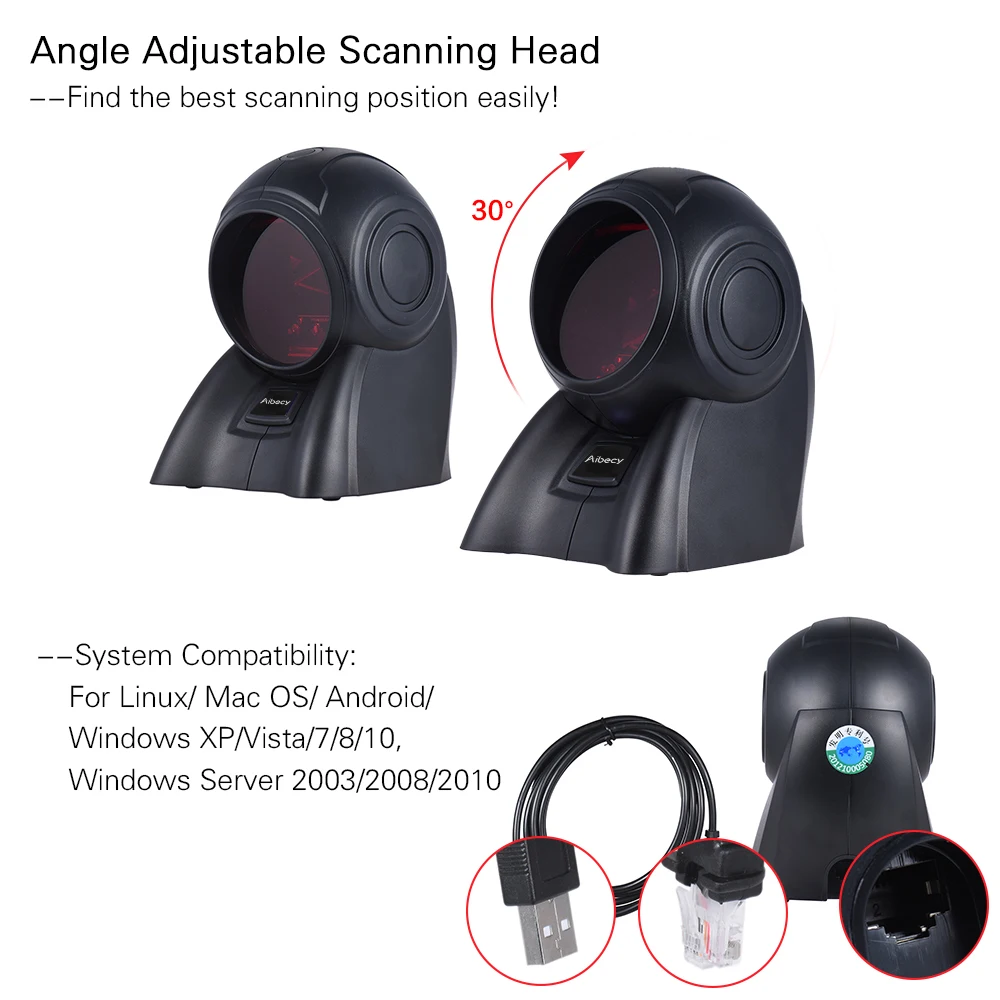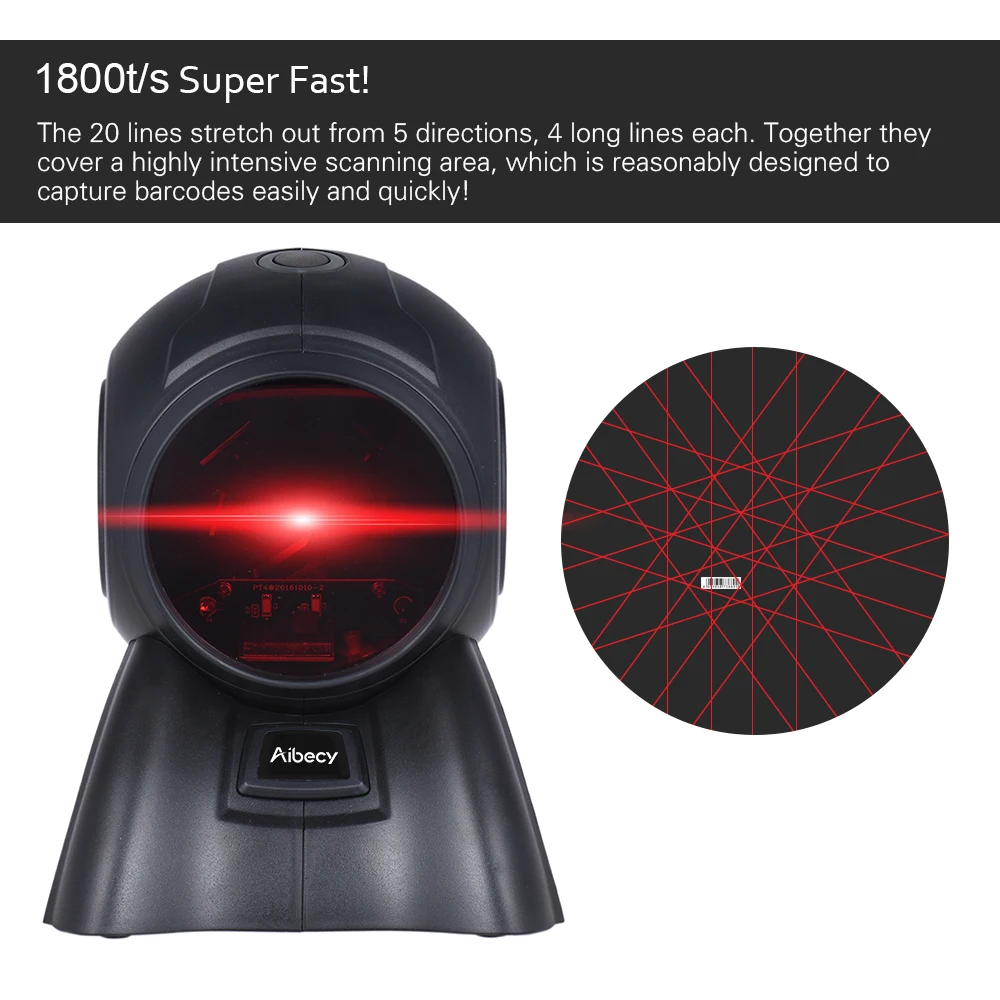 Aibecy Omni-directional 20 Lines 1D USB Orbit Barcode Scanner Reader Auto Scanning 1800t/s Speed 30° Adjustable Head